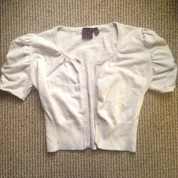 Cream, buttoned, and fitted cardigan - gathered sleeve detail - barely worn - cotton material