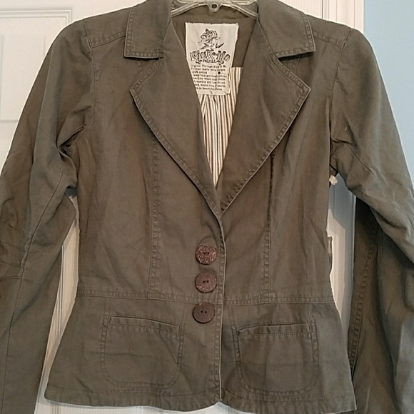 Greenish grayish jacket. Never worn. Has a tag but not price tag. Very cute but has just been sitting in closet.