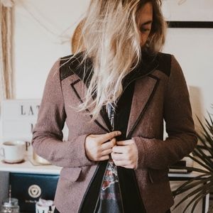Deep purple fitted jacket with zipper and hook finish