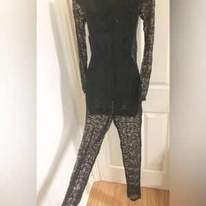 Fitted sexy all lace black mockneck zip up catsuit jumpsuit size medium new
