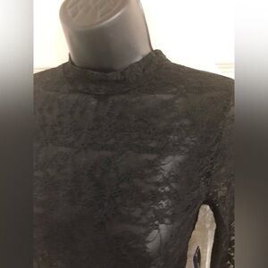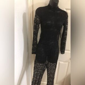 Fitted sexy all lace black mockneck zip up long sleeve catsuit leotard jumpsuit one piece size medium new