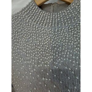 Fitted vintage heavily pearl beading silver shiny zipper back slight turtleneck