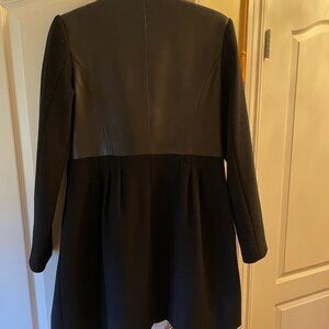 This coat cinches at the waist and is a peacoat on top. Leather on the back.