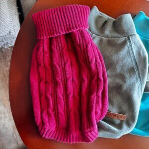 Snag this adorable lot of Fitwarm turtleneck dog sweaters! This set includes four sweaters, all in excellent pre-owned condition. Your furry friend will be cozy and stylish all winter long. Get ready for compliments!\n\nThese sweaters are size M and perfect for keeping your pup warm on chilly days. They are gently used and ready for a new home. Don't miss out on this amazing deal!\n\nHappy shopping!