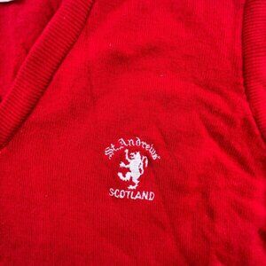 Fitwell Made In England St Andrew’s Scotland Red Merino Wool Vest RARE XL VTG