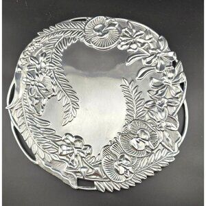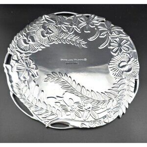 Fitz And Floyd Silver-Plated Floral Serving Tray With Engraved Orchid Design