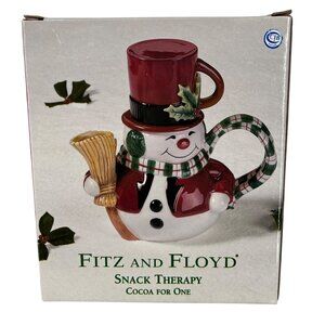 This ceramic snowman teapot and cup set from Fitz and Floyd combines functionality with festive design. Ideal for holiday gatherings or seasonal decor.