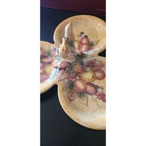 Fitz And Foyd Classics Tuscan Villa Large 3 Section ServingTray/Candy Dish. Condition is Used. The Rooster does have a small chip on top of its head. Includes box