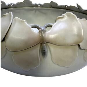 This Rare 1982 Fitz and Floyd 'Elegant Butterflies' Oval Centerpiece Art Bowl is a stunning piece! Crafted in Japan, it measures 11"L x 9"W x 5.25"H and features a beautiful design with delicate butterflies and intricate details. This large oval bowl is perfect for adding a touch of elegant art and making a statement on any table setting or display. A true collector's item unique and absolutely beautiful! # 5043