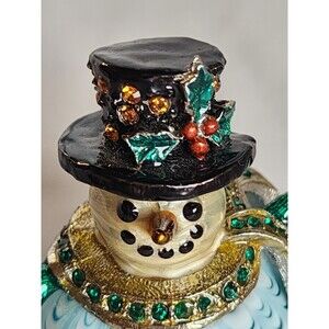 Fitz & Floyd 2006 Guild Holiday Snowman Trinket Box Jeweled Magnetic Closure