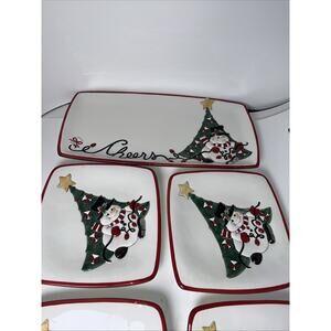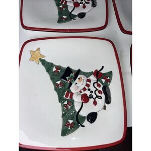 Fitz & Floyd 2007 Cheers Christmas LIghts Snowman Snack Canape Plates 4 & Tray