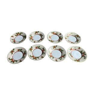 Fitz & Floyd Christmas Holly Saucers – Set of 8 (1982, Japan) new unused