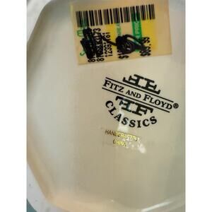 This beautiful Fitz & Floyd Classics ceramic pitcher features the brand’s signature hand-painted detailing and rich sculptural texture. The piece showcases a raised fruit motif including peaches, grapes, berries, and leaves, all rendered in vibrant glossy colors that contrast elegantly against the cream embossed floral background. The ornate handle and rim are accented with gold-toned scrollwork, adding a refined, vintage-inspired touch. Each section of the pitcher is handcrafted, giving it a unique character and artisanal finish. The interior is glazed in a smooth cream tone and remains clean with no staining. The base is hallmarked Fitz and Floyd Classics – Handcrafted China. Perfect as a display piece for kitchen décor, a centerpiece for a dining table, or as a collectible for Fitz & Floyd enthusiasts. Whether used for serving or strictly decorative, this pitcher adds warmth, charm, and timeless style to any home.