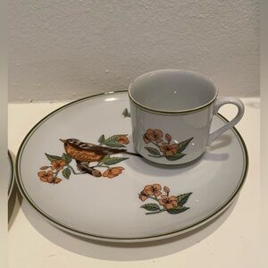 Vintage Fitz & Floyd Collector’s Bird Snack Plates and Cups.