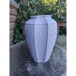 Offered is this lovely Fitz & Floyd Essentials "The Botanical Collection" blue bisque paneled vase. Each section has different designs. It is so elegant. It measures approximately 6 1/2" wide at the widest point. The rim measures 4" in diameter as does the base. It is in very good condition with no damage noted.
