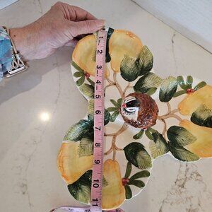 Fitz & Floyd Woodland Partridge and Holiday Pear three section appetizer or tidbit tray.