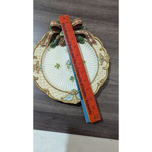 Fitz & Floyd Florentine Christmas Canape Plate Bow Pinecone Design fruit 10"
