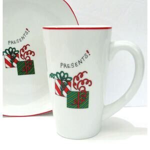 This Festive 2-Piece Set Features A Plate And A Mug With A Fun Colorful Christmas / Holiday Presents Design On Each; by Fitz and Floyd!