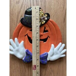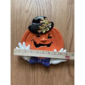Fitz & Floyd Halloween Jack-O-Lantern Pumpkin Face Hands & Derby Hat Plate