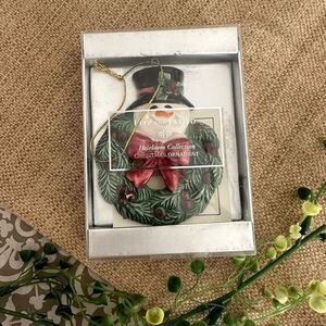 Fitz & Floyd Heirloom Collection Snowman Wreath Christmas Hanging Ornament New