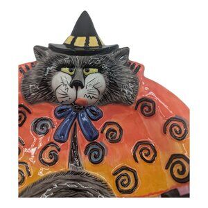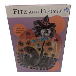 Fitz & Floyd Kitty Witches Canape Plate Handcrafted Halloween Decor Cat Spiders