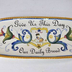 Fitz & Floyd Ricamo Oval Bread Tray Give Us This Day Our Daily Bread Ceramic