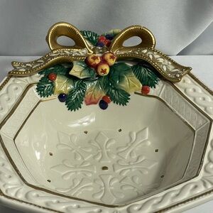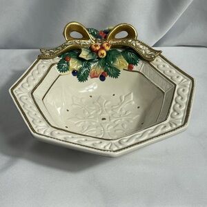 Fitz & Floyd “Snowy Woods” Vintage 96’ Octagon Shaped Serving Bowl Dish Holiday Christmas