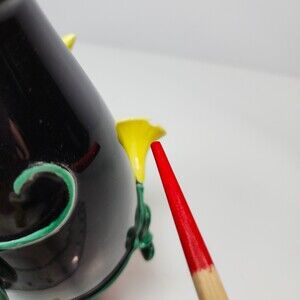 Fitz & Floyd Vintage Floral Vase 6 in. Black yellow Morning Glory Flowers