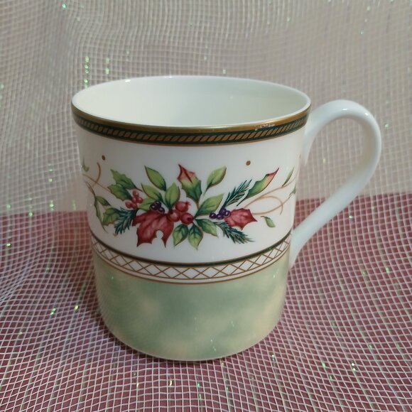Fitz & Floyd Winter Holiday Porcelain Mug-Holly Berries-1999