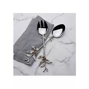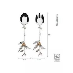Fitz & Floyd Woodgrove Silver Tone Salad Serving Set Fork & Spoon Twigs