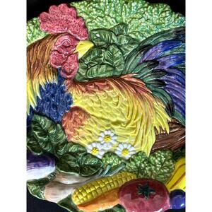 Fitz and Floyd 1996 Vibrant Colorful 'Coq du Village' Majolica Rooster Plate