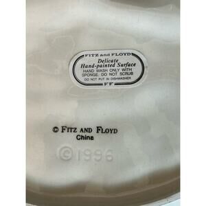 Add a touch of French country charm to your home with this vibrant Fitz and Floyd 'Coq du Village' rooster plate, crafted in 1996. This collectible piece features a colorful, hand-painted Majolica design, perfect for display or adding a festive touch to your table setting. This plate is in excellent condition with no chips or cracks. A must-have for collectors and rooster enthusiasts alike! # 2077