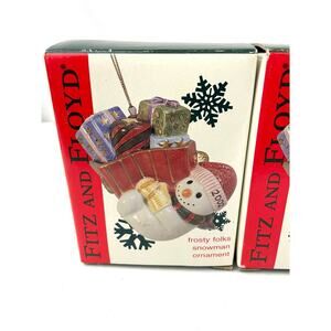Fitz and Floyd 2002 Frosty Folks Snowman Christmas Ornament w/ Box Lot of 4