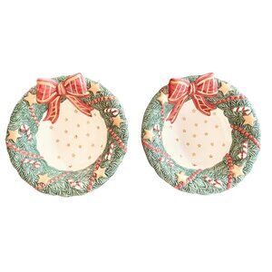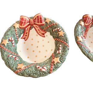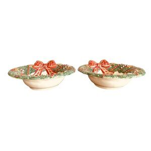 Fitz and Floyd Bow Candy Bowl Set of 2 With Christmas Tree Design 7" Wide