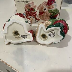 Fitz and Floyd Ceramic Holiday Elf Salt and Pepper Shaker Bears and Santa