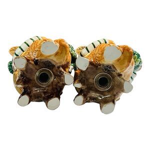 Fitz and Floyd "Christmas Lodge" Bears Shakers from 2001 are traditional ceramic and porcelain salt and pepper shakers featuring a multi-color design. Made in China, these original collectibles showcase a festive Christmas theme with a charming lodge style. NO CHIPS OR CRACKS