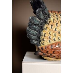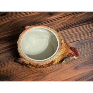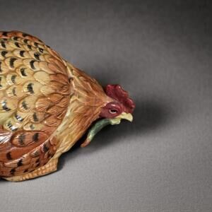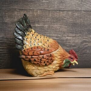 From the Fitz and Floyd Classics Country Gourmet Collection 2000-2009 is this hen holding a leaf in her mouth. It's a butter dish with its lid. It can be used as a casserole dish as well. It's handcrafted of high-quality earthenware and beautifully handpainted in rich colors. It measures 8.75" tall x 7.5" long x 6" wide. It in great condition with no crazing, cracks, or chips noted. Please look carefully at all of the pictures and let me know if you have any questions.