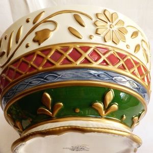 Retired, collectible, Fitz and Floyd Classics Jolly St. Nick Hand painted Holiday Ceramic covered Bowl