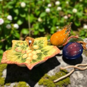 Fitz and Floyd Classics Salt Pepper Shakers Fruit Grape Leaf Plate Tray Venetian