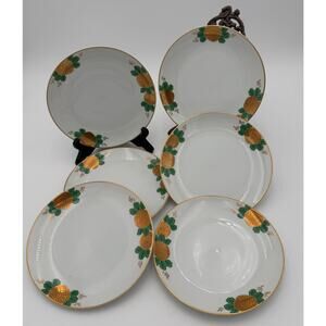 Fitz and Floyd Dessert Plates Gold Flowers with Green Leaves & Gold Trim Set/6