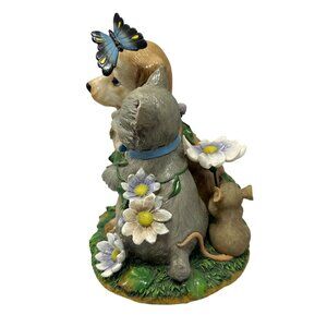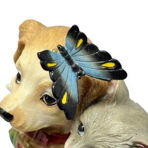 This delightful Fitz & Floyd figurine captures a mischievous puppy and kitten duo, caught in the act of being too cute. A butterfly perches whimsically on the pup's head, probably wondering how it got into this adorable mess.