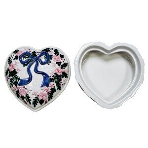Fitz and Floyd Essentials Heart Trinket Ceramic Dish Floral