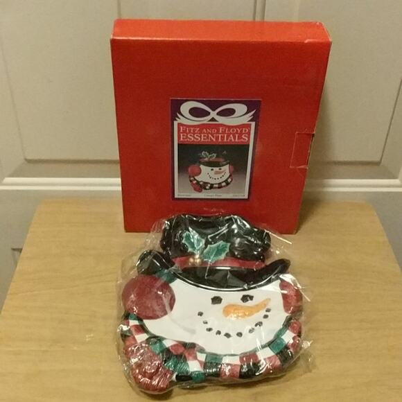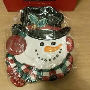 Fitz and Floyd Essentials Snowman Head Top Hat Christmas Canape Plate Dish