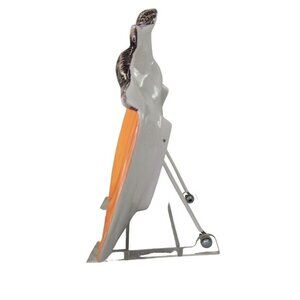 Colors are vivid and crisp. Features a cute kitty with a purple bow on top of the jack-o-lantern. The back of the plate has openings in the footing where string or wire could be inserted to hang the plate on the wall. It could also be used on a plate stand in a hutch or on a shelf for display.