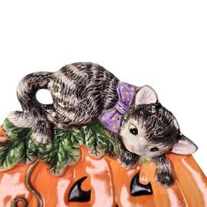 Fitz and Floyd Halloween Snack Plate Cat Jack O Lantern Canape Serving Ceramic READ