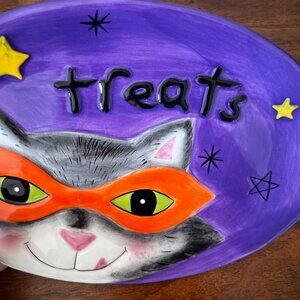 Fitz and Floyd Halloween "Treats" Cat Plate Oval Snack Candy Dish Decor Vintage
