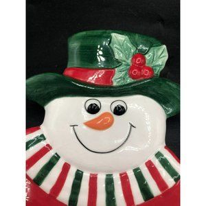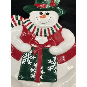 Decorative Fitz and Floyd Essentials Holiday Snowman Canape Plate measures 9 1/2".