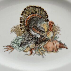 Fitz and Floyd Japan HARVEST Turkey Oval Platter Fine Porcelain Vintage 14" Oval