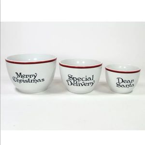 Fitz and Floyd LETTERS TO SANTA 4" 5" 6" Nesting Bowl Set 3Pc