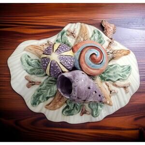 This beautiful small bowl is from the Oceana Collection by Fitz and Floyd. This would be perfect to add to any nautical or seashell theme or decor. It is shaped like a clam with seashells, coral, and seaweed embellishments. It's a sugar bowl with its lid and spoon. It can also be used for condiments. It's handcrafted of high-quality earthenware and beautifully handpainted. The Oceana Collection started being made in 1977. This piece was made in 1996 in Taiwan. It's in excellent condition with no damage noted. It measures 5" tall x 5" long x 5" wide. Please look carefully at all of the pictures and let me know if you have any questions.